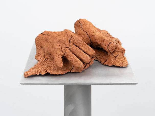 Clay from a dry lake in the Mojave Desert, sand, human saliva, heat, moon, pressure, wind
